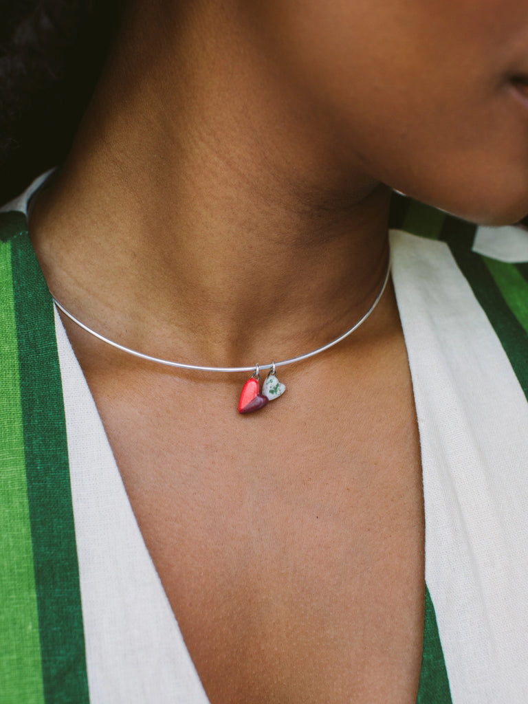 Designed to hold the ones you love close, the My Person Necklace is a beautifully simple and gloriously giftable way to keep your heart’s favorite person near. Featuring two hand-formed porcelain hearts on a sleek sterling silver wire. This necklace is all about connection - whether it's your partner, your best friend, or a family bond, let us help you have a tangible reminder that you can hold close to you.